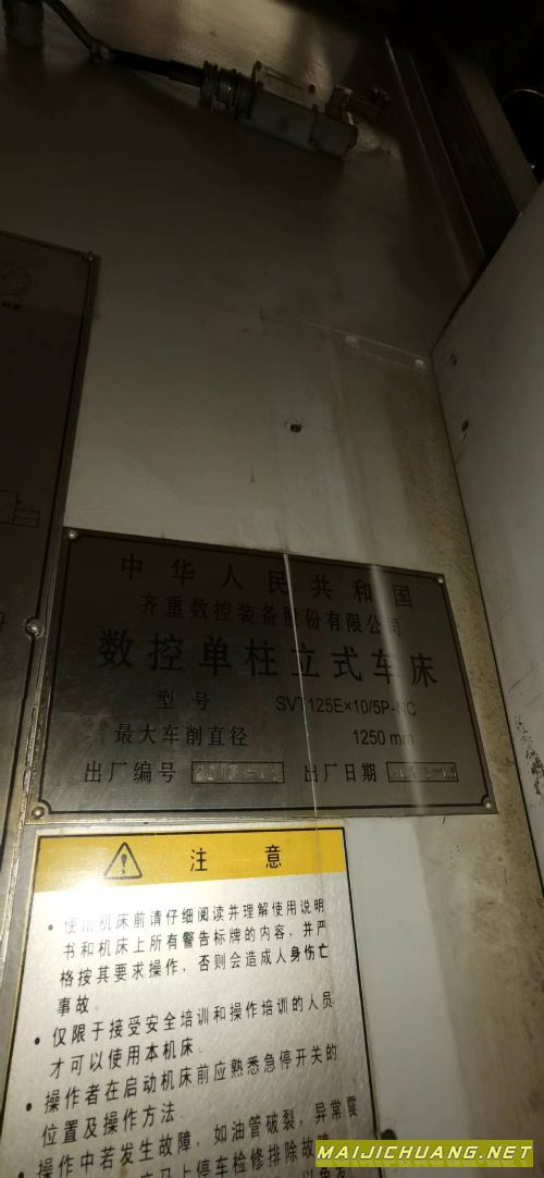 出售2013年齐重SVT125Ex10/5P_NC数控立车,很少用,在位。
