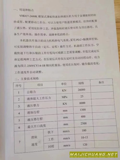 :南通铭格2600吨框架油压机,有效台面3米4.6米,多点.