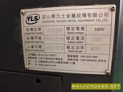 :2018年雅力士2518数控铣发那科MF系统,两线一硬导轨皮.