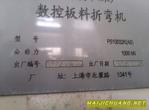 2002年产数控板料折弯机,PS10032K(AS),上海冲剪机床厂,安装在位,系统完好,可以试机,厂家很少用,货在贵州,价格10万。