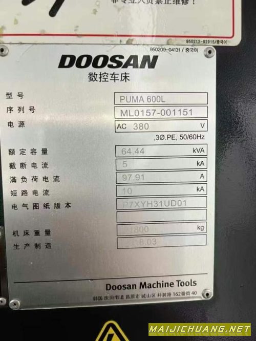 韩国原装进口斗山PUMA600L数控车床,21寸液压卡盘,12工位刀架,液压中心架,高低齿轮变速,加工长度3米。X/Z行程:940/3600mm,法纳克系统。