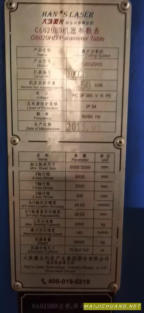 产品名称:大族4000瓦二氧化碳机 机床60002000 机床电机是.