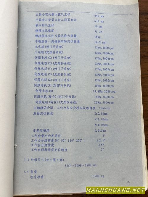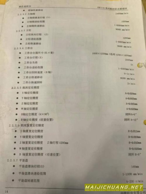 意大利帕马130高配型数控镗床工作台参.
