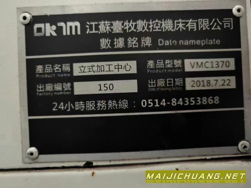 江苏台牧1370加工中心,台湾御成BT50主.