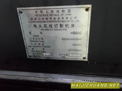 出售:2018年苏州三光HB600中走丝,在位.