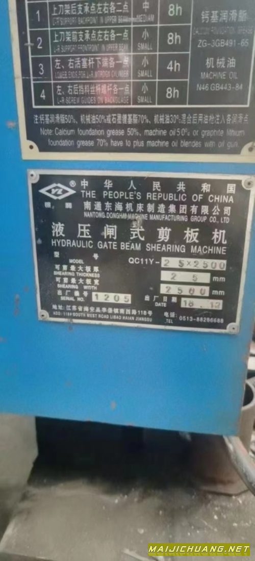 出售液压闸式剪板机QC11K-202500