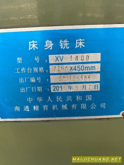 低价出售南通精育床身铣床xv1600洛阳仓.